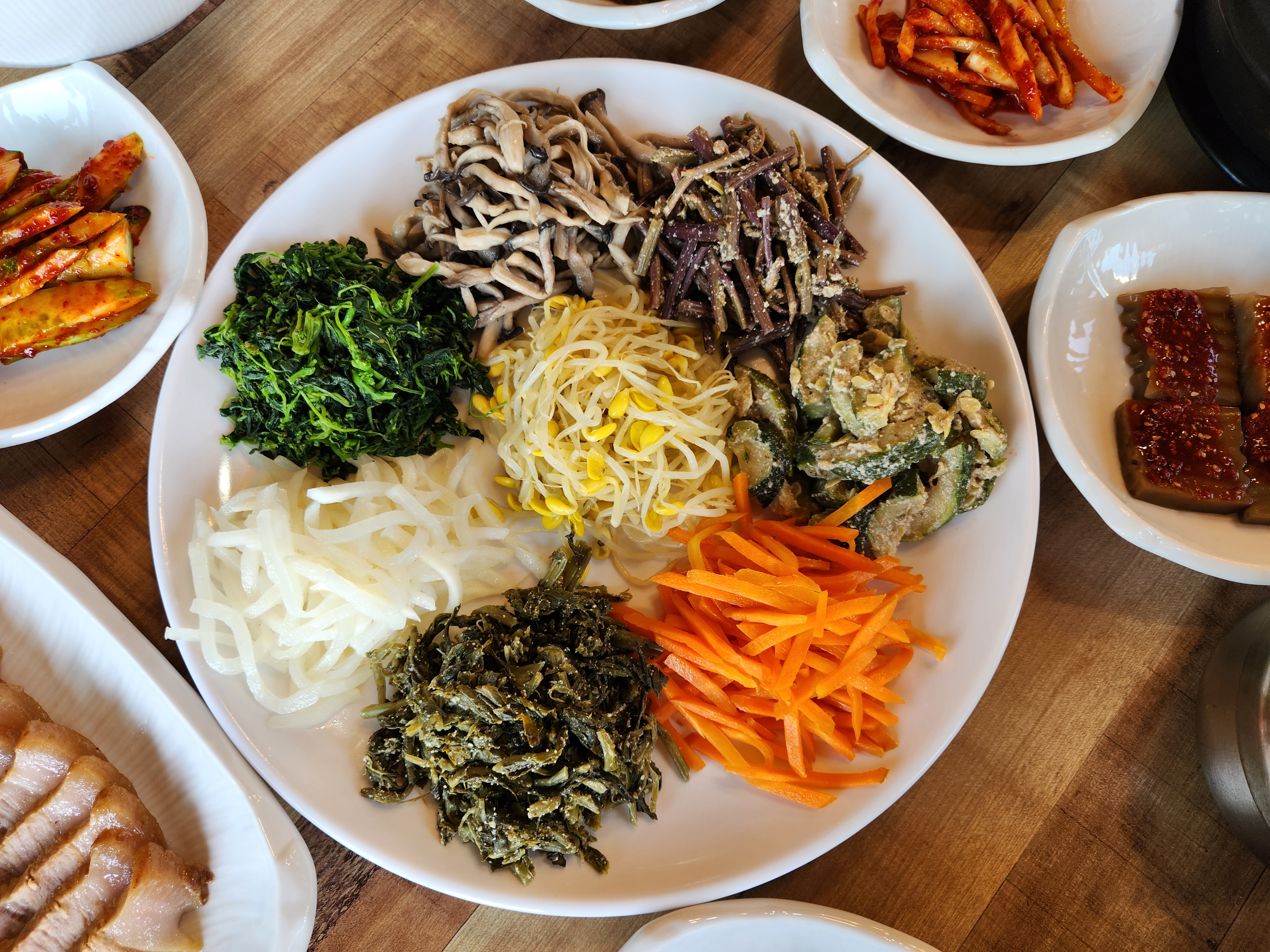 신선해 보이는 알록달록 나물들과 반찬, 따끈한 된장수육 그리고 제일 맘에 든 보리밥!!!!